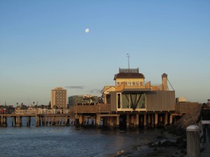 We’d got off the tram in Fitzroy St so we wandered down to the pier and walked out to the St Kilda Pier Kiosk, which was recently rebuilt after it burnt down in 2004. It’s closed for a private function but we got to the walkway where you see the penguins come ashore at night & watch the city views. It’s too early, so we’ll come back, later. Now, it’s only 4pm & dusk is about 6pm. So we go for a wander past the sea baths which is mostly shops now.