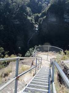 Heading back the same way, then after turning at the bridge down to Leura Cascades the walk follows the sound of the rushing water as the steps head down to the Cascades & the top of the the Bridal Veil Falls aka Leura Falls. From here the round walk continues past the top of the falls, up the stairs & up many more steps, but the reward is the great views along the cliffs, out to Mt Solitary and back across to the ladder at Bridal Veil Lookout, perched up on the cliff. After the lookout, take the path up to the Round Walk (not the steps down to Fern Bower) which will bring you back, down quite a few steps, to the bridge, and the path to the carpark. You may find a few confused walkers, like I did but its not far and there’s signs, but a map always helps. The round walk is a good workout all on its’ own!