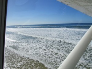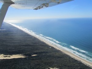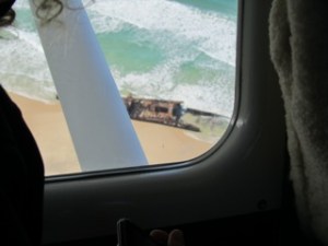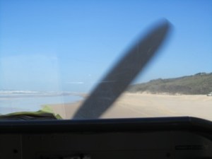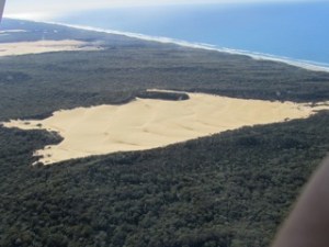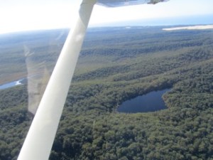 Opportunity knocks!!! Little did I know that today’s agenda would include a marvellous scenic flight by Air Fraser Island. While savouring the sights of the magnificent beach/highway our Kingfisher Bay eco-tour stopped briefly while the pilot hopped on to see if anyone was interested. A very brief pause while I considered finances, but such a glorious, sunny day that was just perfect for flying was not to be wasted. Into the nearby plane and we were soon off, right there and then from the beach, over the bus, the ocean, the sand dunes and into the heart of the island where the sand gradually swallows the forest. Circling back past the Maheno shipwreck, we even saw a hump back whale coming up the coast to where they shelter on the Hervey Bay side of Fraser island. All too soon, the skilful touch down on sand was so soft and smooth, how lucky were we?