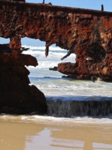 The Maheno has been slowly rusting away on the shores of Fraser Island since 1935. She was being towed to Japan for scrap and came adrift. Nobody wanted to pay to salvage her so she was left on the beach and waited for time to do it’s work. The picture above shows her being built in Scotland in 1905. Old wrecks often become tourist attractions, but I wonder if such a simple (=cheap) solution would be allowed nowadays.
