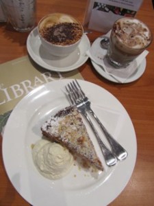Can you believe my dismay after ordering the excellent raspberry cake, to find there were now scones on the menu board! Ahah! Upon further investigation, I discovered that scones are only available about 2.30pm daily, and only while they last. Of course, my watch was synchronised to scone time the next day and after many sconeless hours of research they were most welcome. There’s also an excellent free wi-fi connection throughout the library and cafe.
