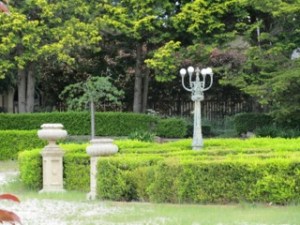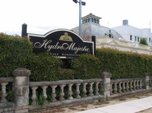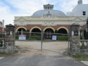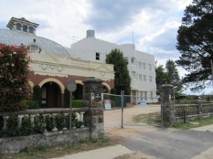 Somewhere in the dark ages before digital photos I must have a picture of the tea room & Megalong Valley taken from inside the Hydro. This was the first place I ever saw High Teas but it was rather dark & dingy, as I recall. Feel free to send me any old Hydro pictures you may have so we can continue the saga. The Blue Mountains City Library has a wonderful collection of old postcards, which includes the Hydro Majestic, in their image library. The dining room incorporates the gold digger, Edward Hargraves original house. From the photos below, it only looks like the hedge has received some Tender Loving Care while the buildings appear, from the gate, to be untouched. What a massive undertaking to restore such a building but let’s hope this old character survives.