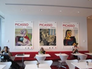 Never really been enthusiastic about Picasso. Still wanted to see the exhibition in case I was pleasantly surprised by the real thing. I wasn’t. Although, there was an excellent guide, podcasts and ten rooms with 150 paintings and sculptures on display, it just wasn’t my cup of tea. I found them grotesque. Back to the Impressionists for me I think. The Village Dance, 1922 with it’s Renoir overtones and the Young Painter, 1972 were the paintings I liked most, as they stood out by far from the rest of Picasso’s work for me. This exhibition Picasso: Masterpieces from the Musée National Picasso, Paris was recently shown at the de Young Fine Arts Museum of San Francisco and they have information on the Village Dance and Picasso: The Women Behind the Artist here. Somehow, I found the advertising posters and displays preferable to the actual paintings. Perhaps, they highlighted the strong colours and made them more vibrant. Obviously, a matter of taste.