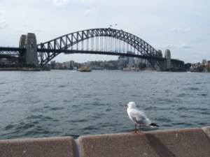 In next to no time a cool change arrives and it’s suddenly cold and I’m a bit wet from my over enthusiastic attempts to subdue my burning feet. A storm is gathering, so much too soon I’m shivering and on my way back to the ferry to Circular Quay, which has just left. Never mind, except that it’s cold now.