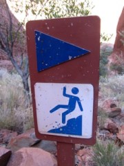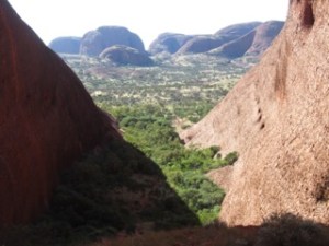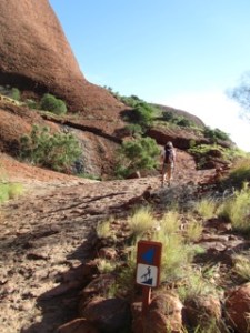 Up even earlier today to drive the 50 km out to the Kata Tjuta from Yulara Resort at Ayers Rock before sunrise. Here’s the Visitors Guide for Uluru-Kata Tjuta National Park with maps and info. There’s also a sunrise and sunset viewing platform in the dunes near Kata Tjuta for some great pictures. Fortunately, everything is well signposted for directions and information.