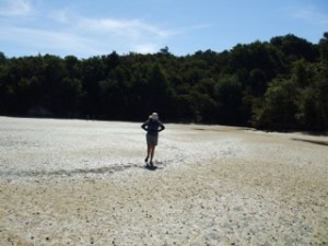 The tidal nature of the track meant this was my initiation into Tevas, the sturdy water sandals. Everyone needed something similar so we could all enjoy stomping through the water and over the shells in the estuaries with such reckless abandon. Great fun, especially as the tide rises or falls, as long as you allow yourself plenty of time to cross. Here, everything is determined by the tides. Totally amazing to see the transformation, with a ferry arriving at your front door right where you walked the night before!