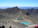 Such a relief to get to the top, catch your breath and marvel at the Red Crater and the valleys below. Still more loose rocks and with a few more slips and slides we managed to reach a rocky outcrop with the marvellous Emerald Lakes below and rest our bones, briefly.