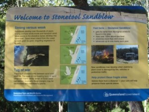 Stonetool Sandblow Lookout was our first stop. It’s hard to believe the sand blows across the island and buries the forest. If you look closely you can see the top branches still sticking out of the sand.